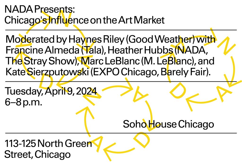 Join NADA at Soho House for a panel discussion about art fairs, galleries, and Chicago’s sustaining influence on the mainstream through its investment in alternative structures.